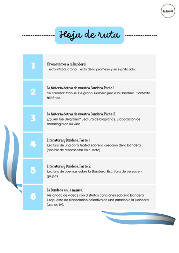 Secuencia pensada para trabajar con los estudiantes que realizan la promesa a la Bandera. Incluye actividades sobre el significado de la promesa y la figura e historia de Belgrano, así como también propuestas para abordar literatura y música sobre la Bandera.
