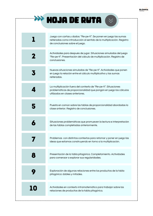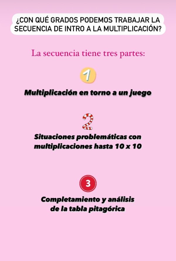 Secuencia de 10 clases que inicia con el abordaje de la multiplicación a partir de un juego con cartas y dados para luego pasar a otros contextos.